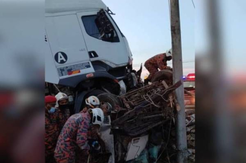 3 Tersepit Kereta Remuk Teruk Berlanggar Dengan Lori Treler